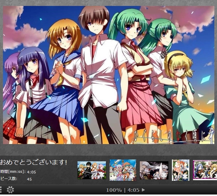 | Series: Higurashi no Naku Koro Ni Pieces: 45 Rotate: Yes Link to puzzle: here |