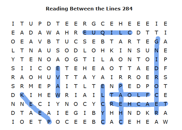 Words to Find: CHEAP, CLIQUE, CYCLE, FLOAT, KEEP, RECORDING, TEACHER, WAVE