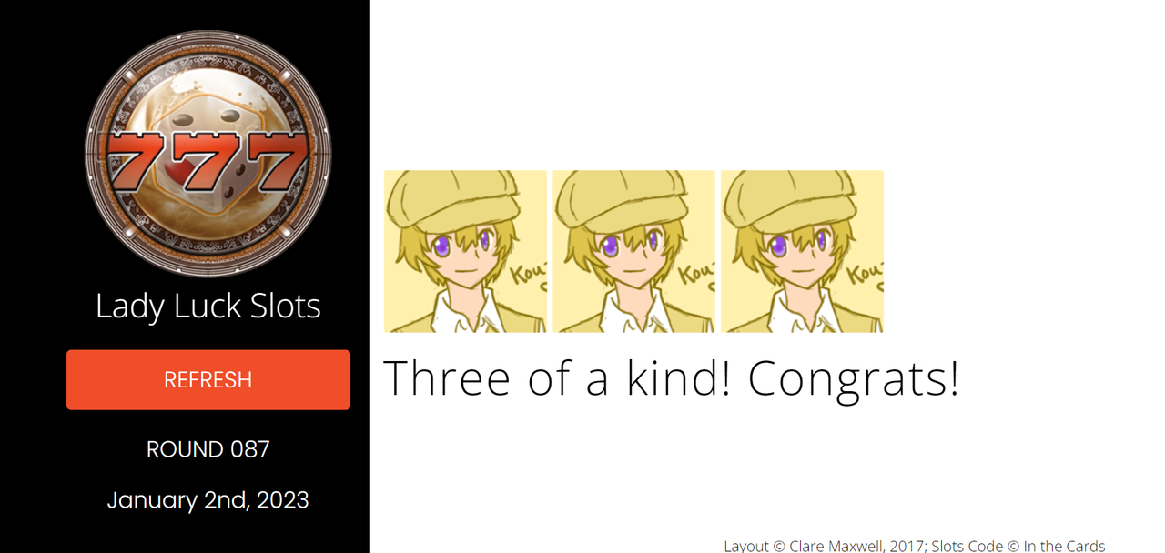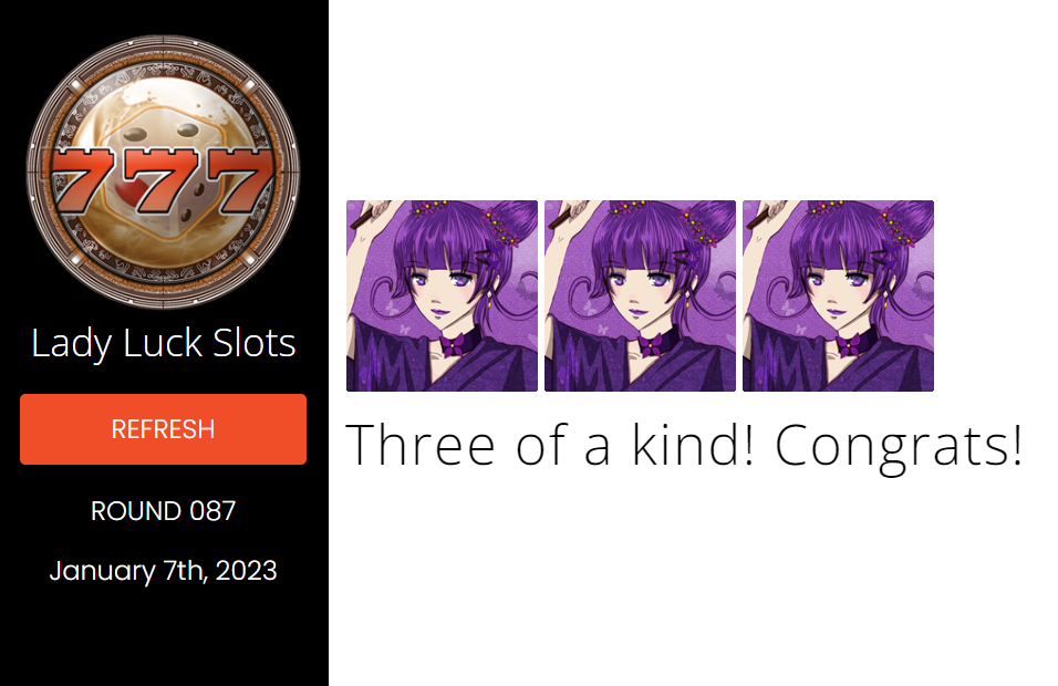 • Take a screenshot of your spin and link it in your comment! Make sure the sidebar with "Lady Luck Slots," the current round, and the date is visible along with your spin. (See the above examples.)
