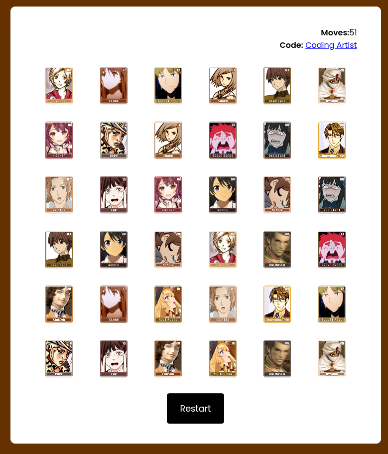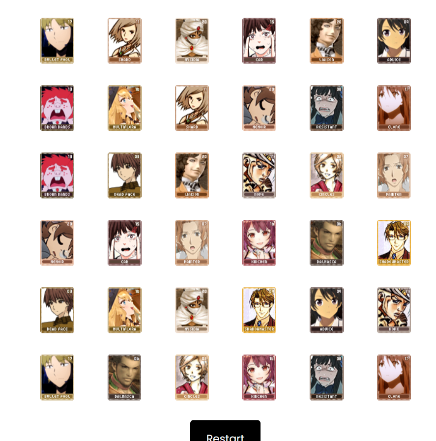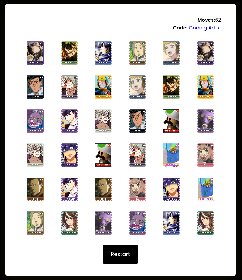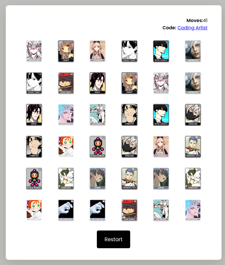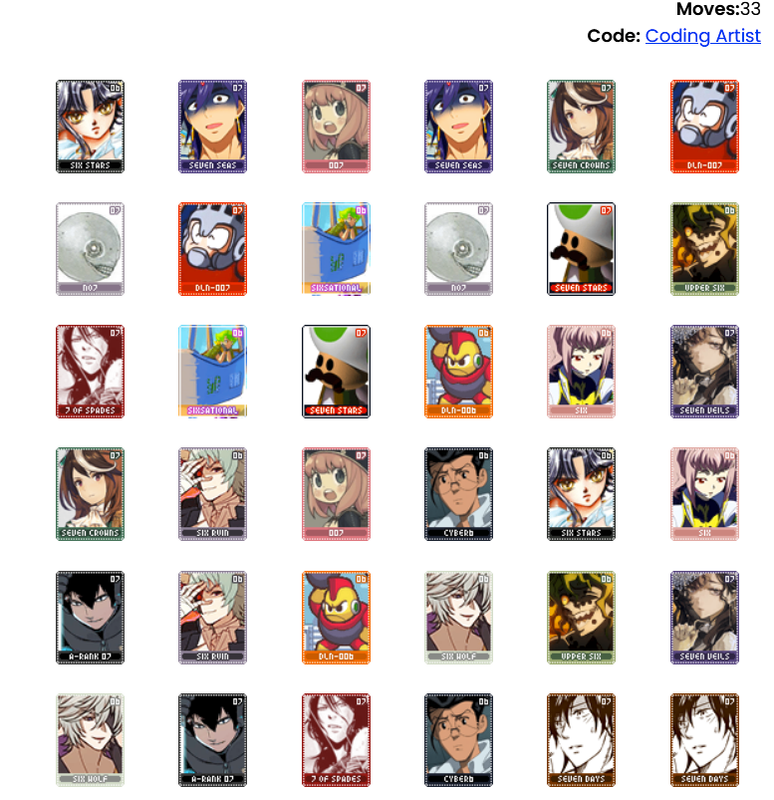 This is just like the concentration you might have played as a kid. Flip over each square and try to find the one with the matching card.