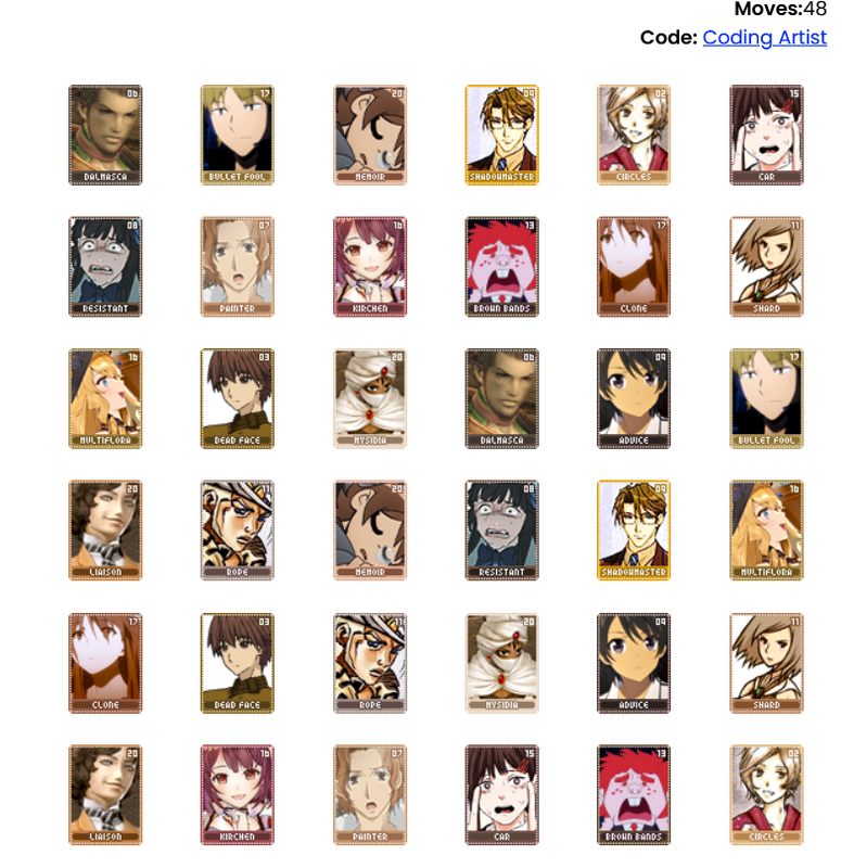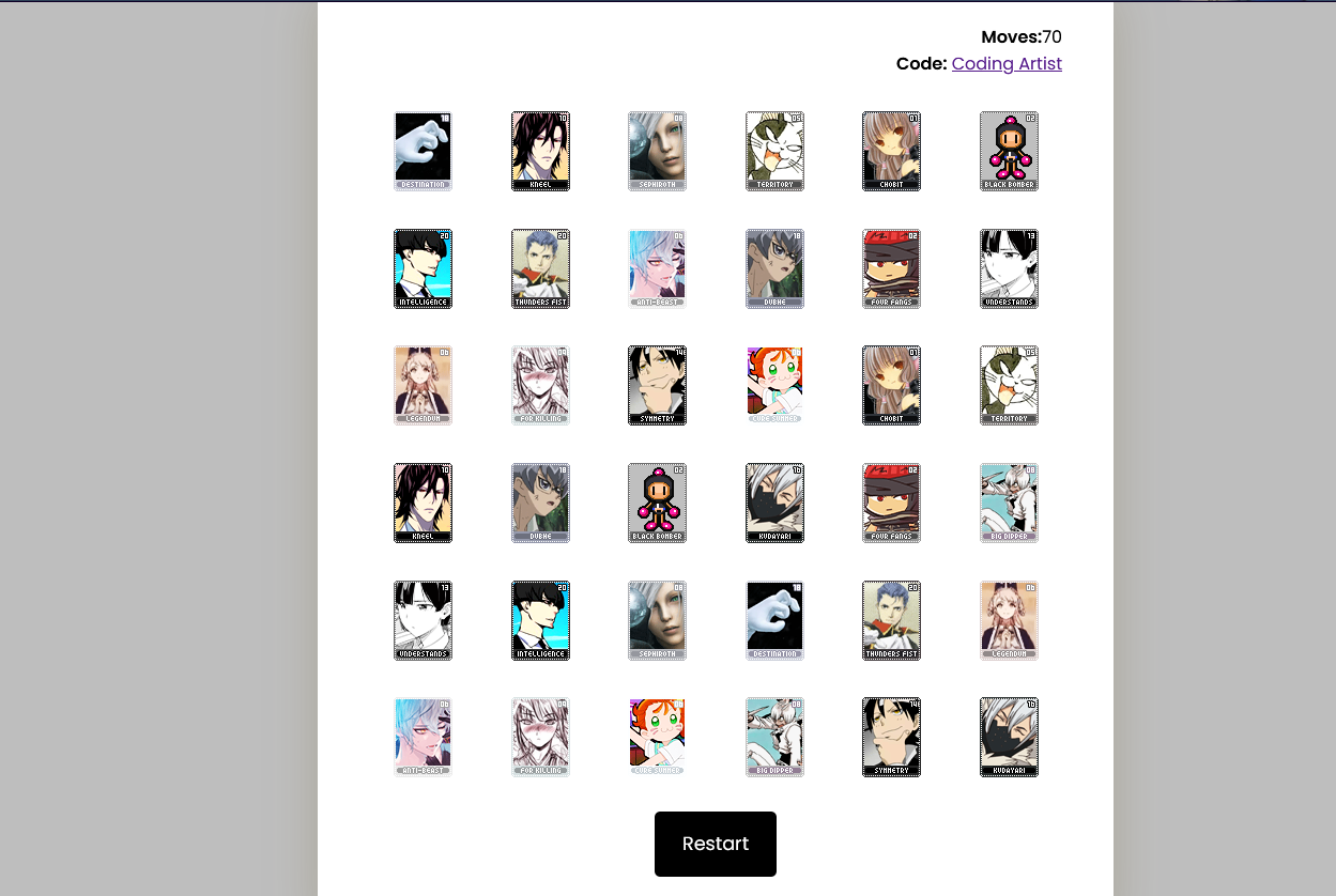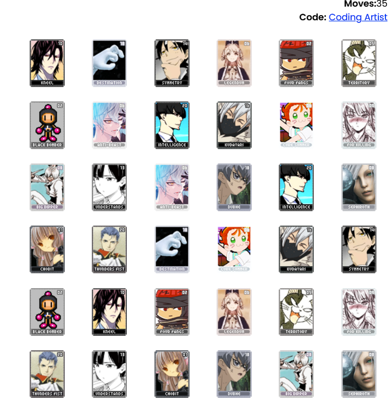 Take screenshots of your completed memory games and link them in your comment! Here's an example.
