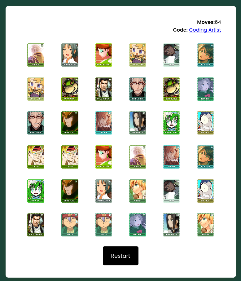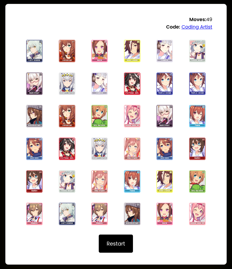 This is just like the concentration you might have played as a kid. Flip over each square and try to find the one with the matching card.