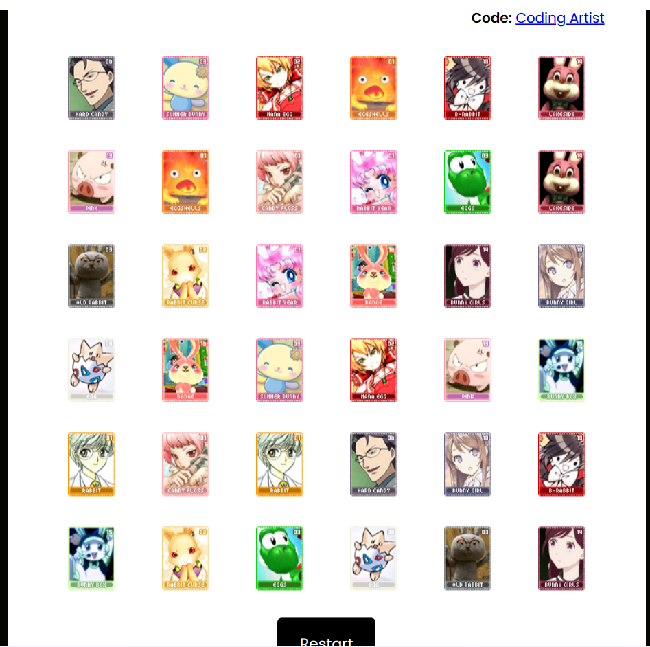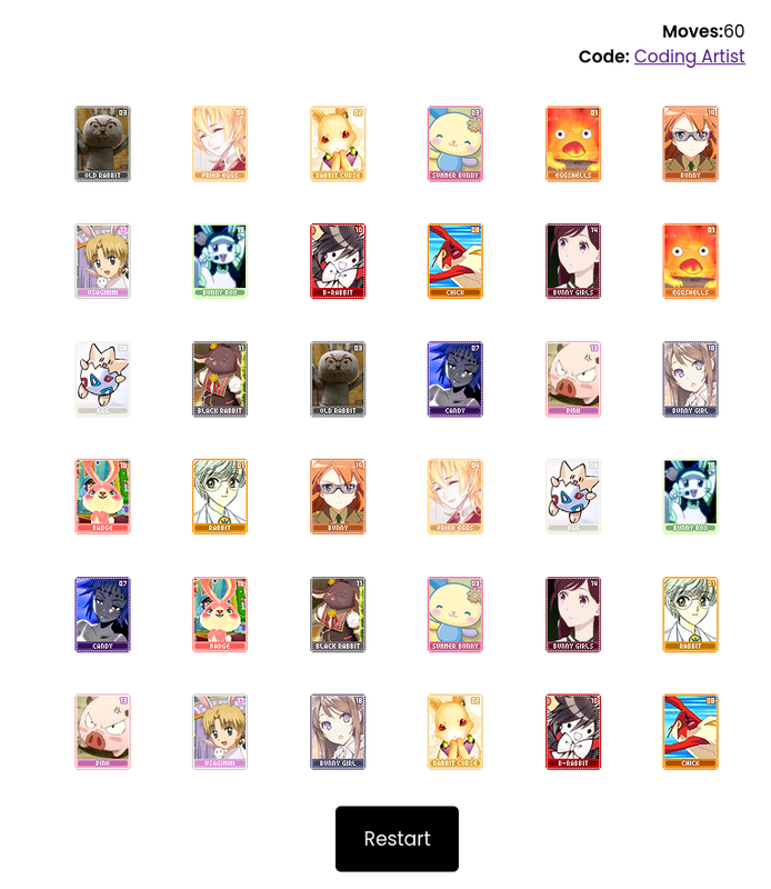 You'll receive ten random cards for each memory game you complete. For the color-coded boards, you'll get ten cards matching the color of the board. For the themed board, you'll get ten random cards. Complete all three boards to receive a bonus crayon, for a possible total of thirty cards and one random crayon.